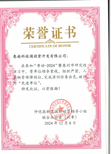 我司榮獲“粵動(dòng)-2024”暨惠州市研究性演習(xí)先進(jìn)單位